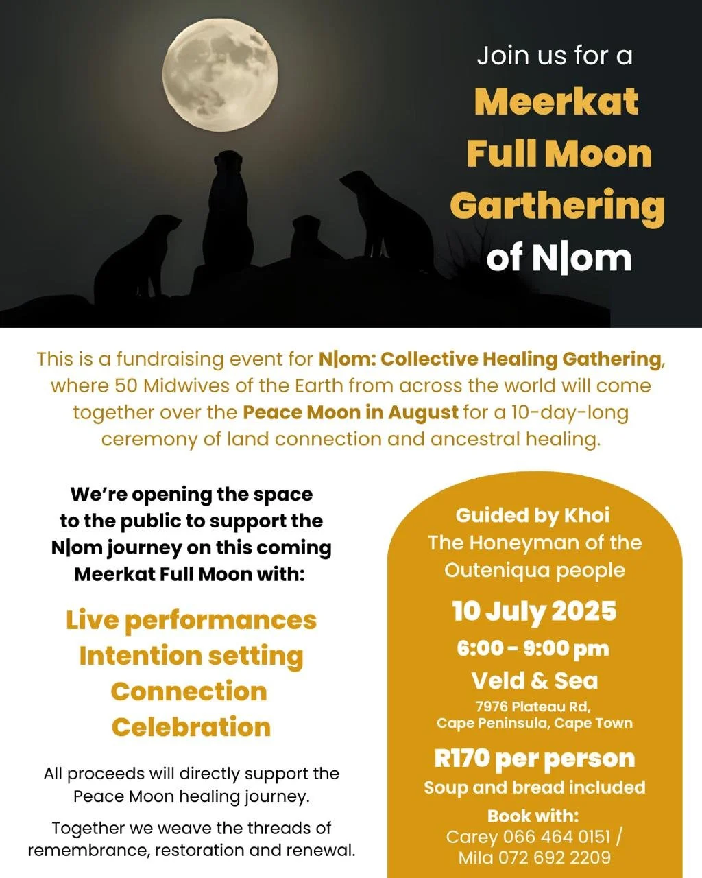 It has been said Peace begins at birth. So under the watchful light of the Peace Full Moon on 9th August 2025, marking New Year for the Khoe people, Midwives of the Earth enter into the birth chamber of our ancient and new world, through a sacred healing journey of N|om. This gathering aims to collectively birth a new time of Peace.